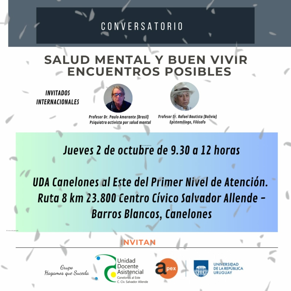 El evento «Salud mental y buen vivir Encuentros posibles» contará con la participación del profesor e investigador de la Fundación Oswaldo Cruz (Fiocruz, Brasil), Psiquiatra Paulo Amarante y del epistemólogo, filósofo y escritor, Rafael Bautista, de Bolivia.